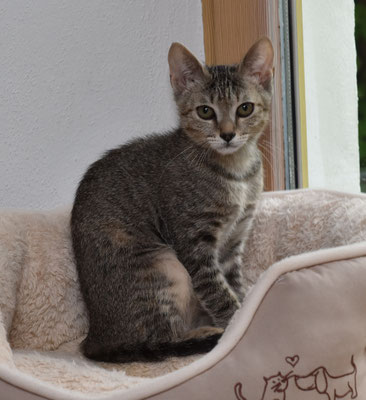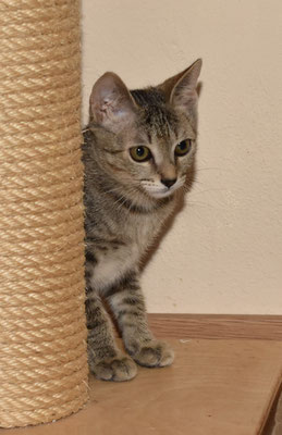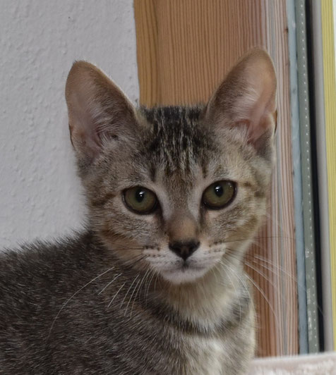 Juli 2025 - Hier kommt das kleine Grautigermädchen Mindu. Die Süße ist unheimlich neugierig und menschenbezogen.